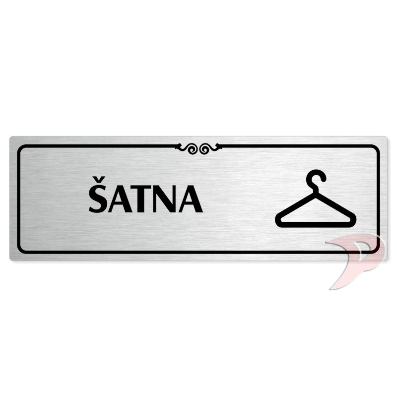 Šatna, 200x66mm, stříbrná popiska s ozdobou uprostřed