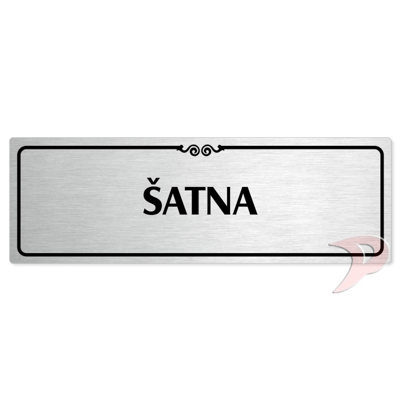 Šatna, 200x66mm, stříbrná popiska s ozdobou uprostřed