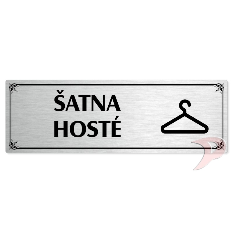 Šatna hosté, 240x79mm, stříbrná popiska s okrasným rámečkem