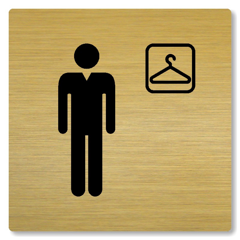 Cedulka na dveře “Šatna muži“ Vyrobeno z broušeného lakovaného hliníku o síle 0,6 mm Rozměr je 80x80mm, 100x100mm, 118x118mm a 148x148mm Povrch je pololesklý  Obrázek či text je tepelně-chemicky natištěn do materiálu, a nelze ho odstranit. Cedulka je z výroby podlepena oboustrannou  páskou pro ... celý popis