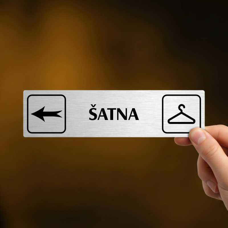 Šatna vlevo, stříbrná cedulka, 180x45mm120 Kč/ ks99 Kč bez DPH