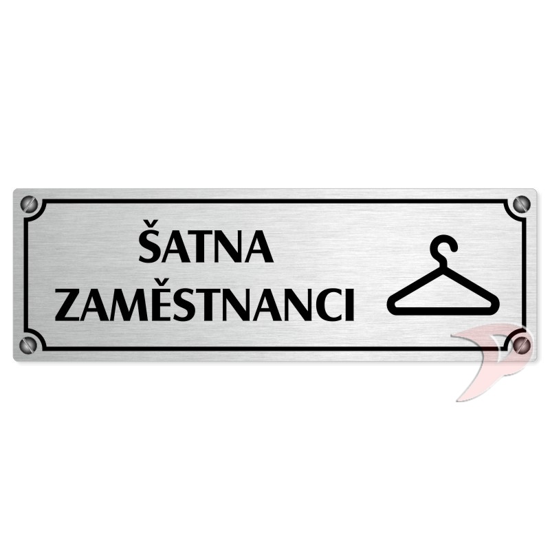 Šatna zaměstnanci, 200x66mm, stříbrná popiska s imitacemi šroubků
