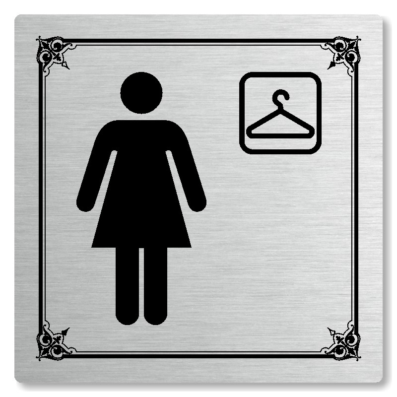 Cedulka na dveře “Šatna ženy“ Vyrobeno z broušeného lakovaného hliníku o síle 0,6 mm Rozměr je 80x80mm, 100x100mm, 118x118mm a 148x148mm Povrch je pololesklý  Obrázek či text je tepelně-chemicky natištěn do materiálu, a nelze ho odstranit. Cedulka je z výroby podlepena oboustrannou  páskou pro ... celý popis