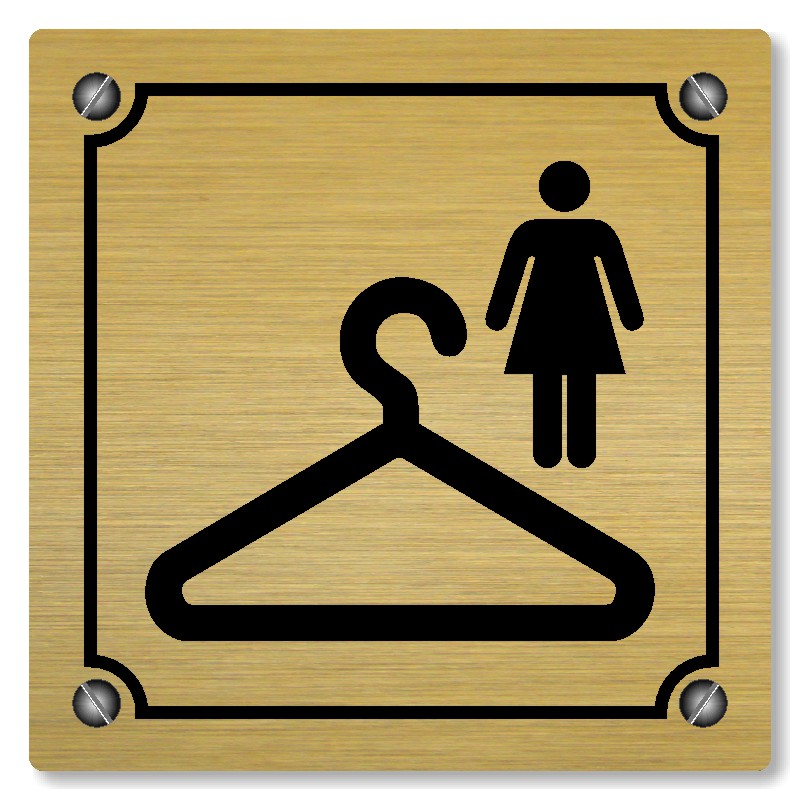 Cedulka na dveře “Šatna ženy“ Vyrobeno z broušeného lakovaného hliníku o síle 0,6 mm Rozměr je 80x80mm, 100x100mm, 118x118mm a 148x148mm Povrch je pololesklý  Obrázek či text je tepelně-chemicky natištěn do materiálu, a nelze ho odstranit. Cedulka je z výroby podlepena oboustrannou  páskou pro ... celý popis