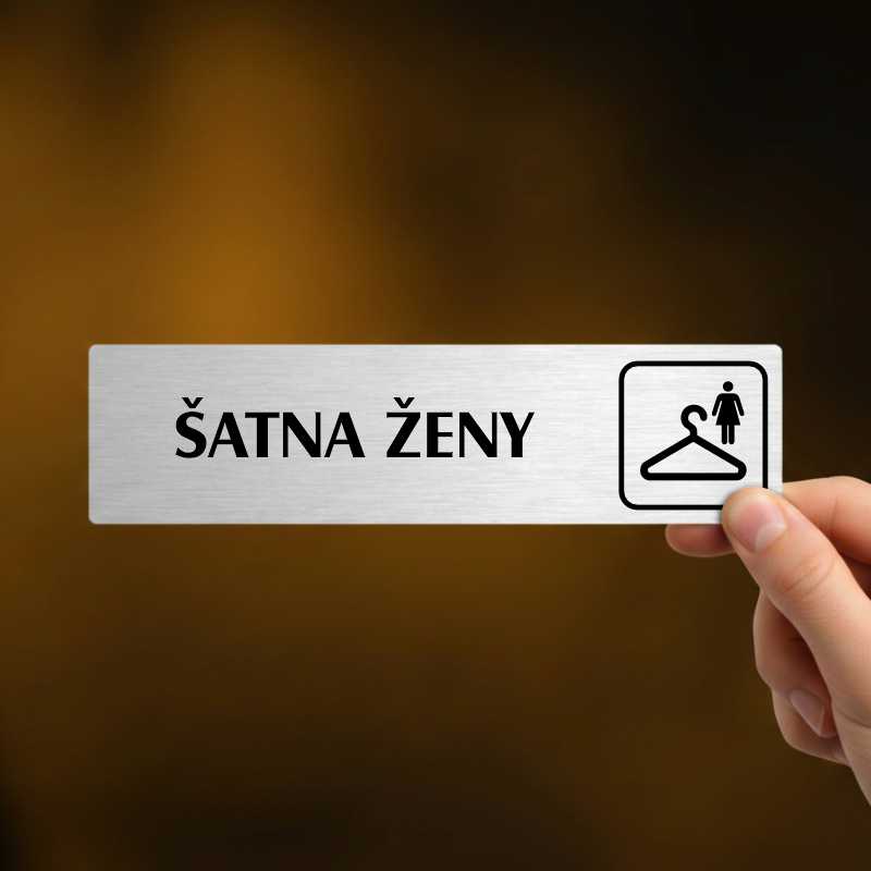 Šatna ženy, stříbrná cedulka, 180x45mm