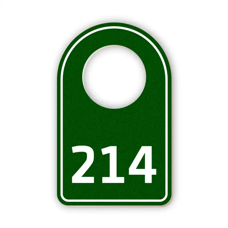 Vyrábíme visačky s odolným povrchem proti otěru. Průměr otvoru pro zavěšení je 30mm. Otvor jde upravit dle vaší potřeby. Síla dvouvrstvého materiálu je 1,6mm.  Číslo je do materiálu vyryté (vygravírované), tím je zaručena viditelnost grafiky po celou dobu životnosti visačky. Cena je včetně vyrytého... celý popis