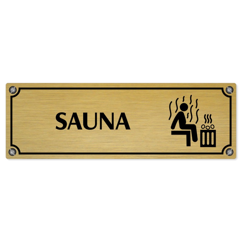 Sauna, 240x79mm, zlatá popiska s imitacemi šroubků