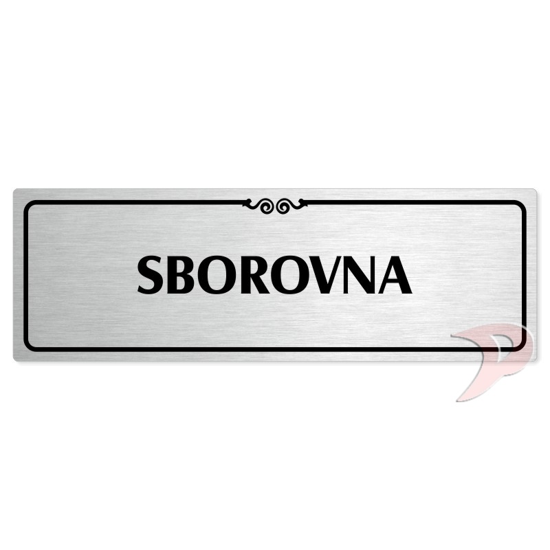 Sborovna, 240x79mm, stříbrná popiska s ozdobou uprostřed
