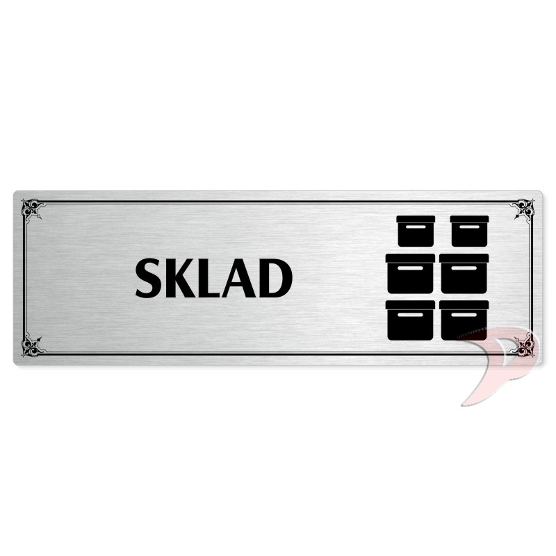 Sklad, 240x79mm, stříbrná popiska s okrasným rámečkem
