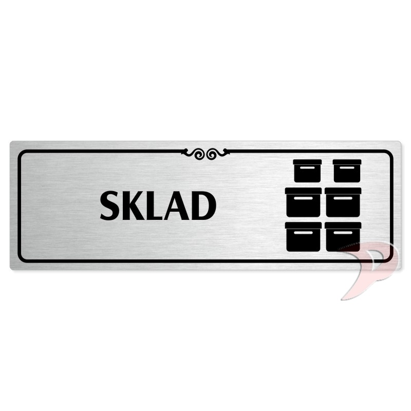 Sklad, 240x79mm, stříbrná popiska s ozdobou uprostřed