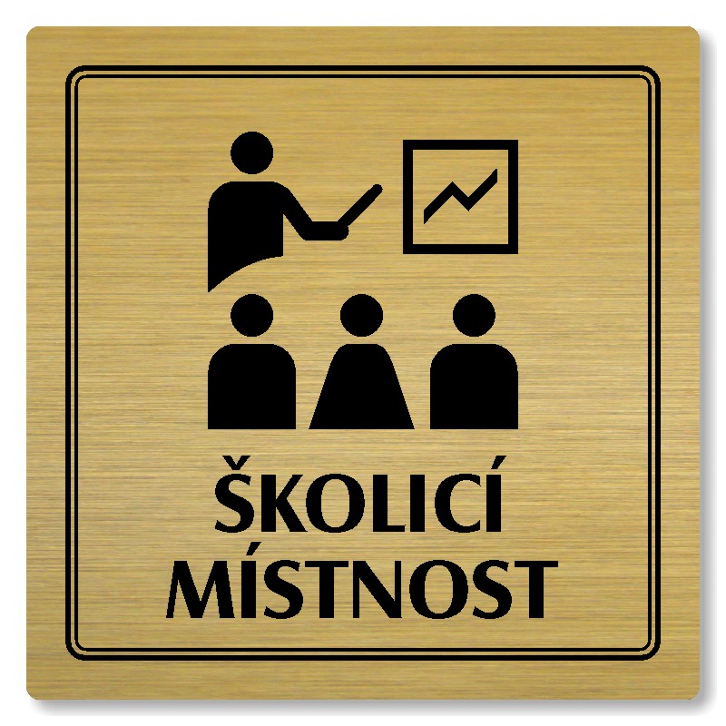 Cedulka na dveře “Školicí místnost“ Vyrobeno z broušeného lakovaného hliníku o síle 0,6 mm Rozměr je 80x80mm, 100x100mm, 118x118mm a 148x148mm Povrch je pololesklý  Obrázek či text je tepelně-chemicky natištěn do materiálu, a nelze ho odstranit. Cedulka je z výroby podlepena oboustrannou  pásko... celý popis
