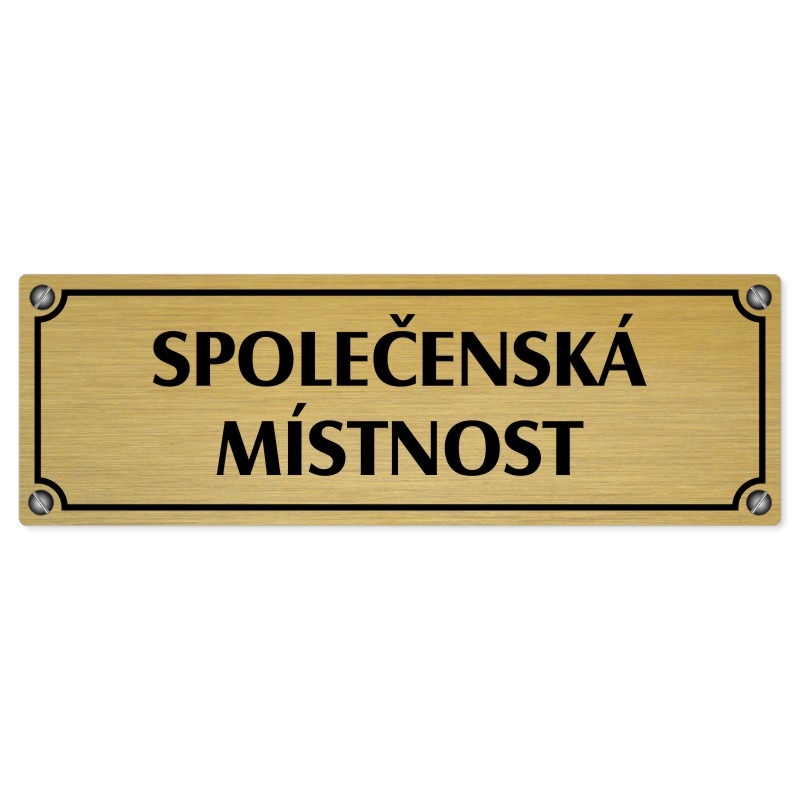 Společenská místnost, 240x79mm, zlatá popiska s imitacemi šroubků