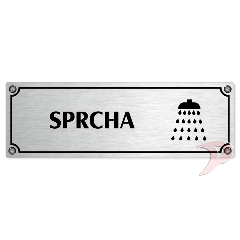 Sprcha, 200x66mm, stříbrná popiska s imitacemi šroubků