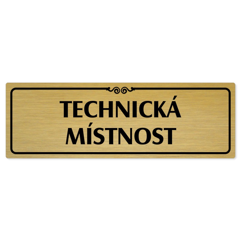 Technická místnost, 200x66mm, zlatá popiska s ozdobou uprostřed