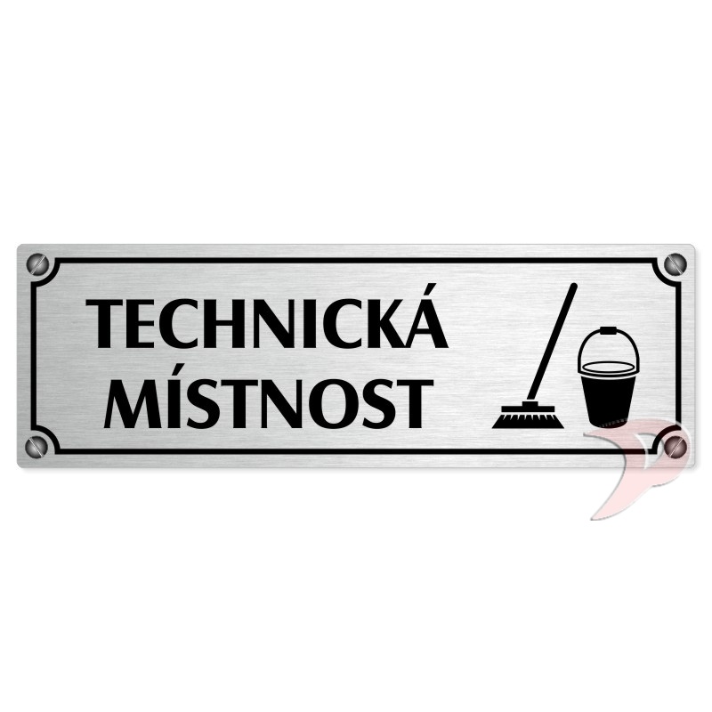 Technická místnost, 240x79mm, stříbrná popiska s imitacemi šroubků