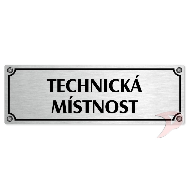 Technická místnost, 240x79mm, stříbrná popiska s imitacemi šroubků