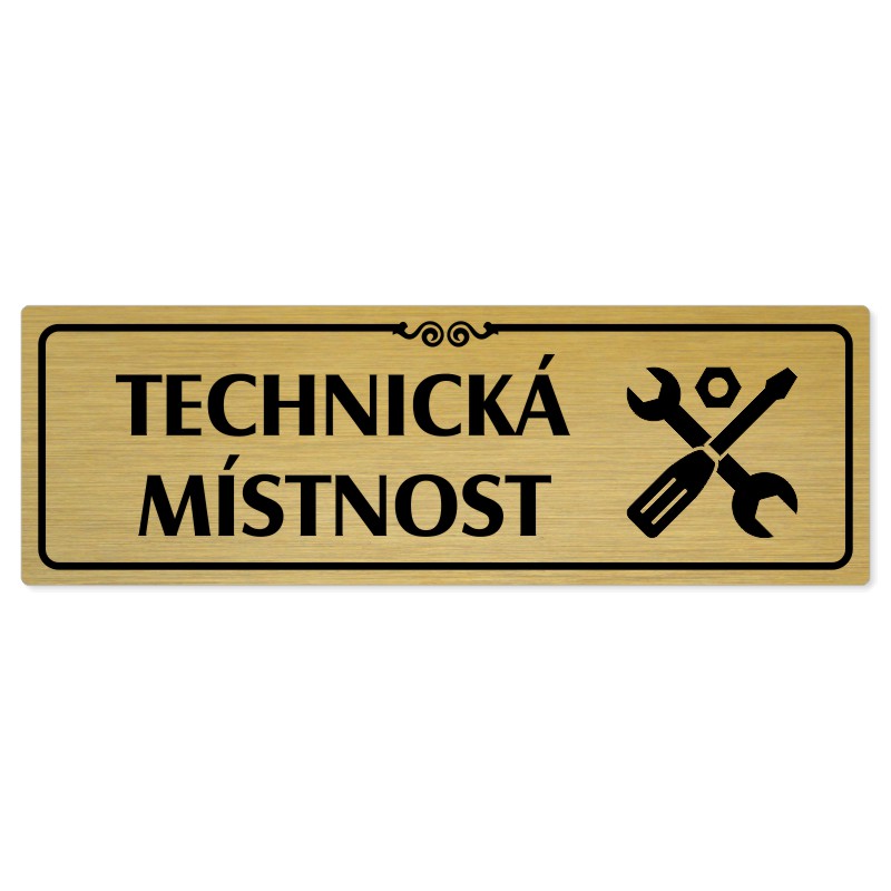 Technická místnost, 240x79mm, zlatá popiska s ozdobou uprostřed