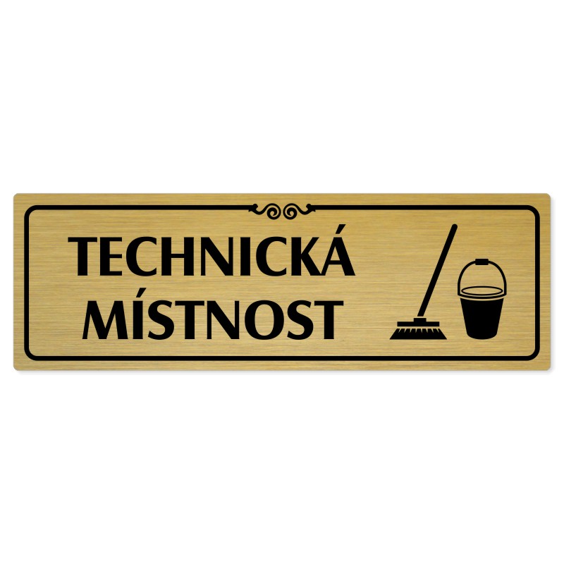 Technická místnost, 240x79mm, zlatá popiska s ozdobou uprostřed
