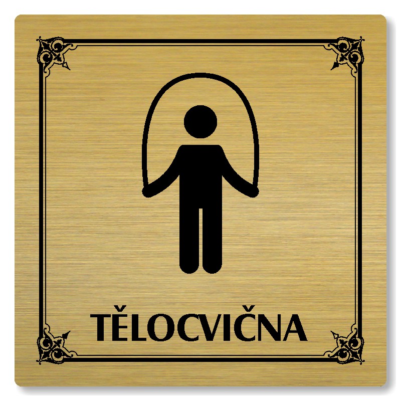 Cedulka na dveře “Tělocvična“ Vyrobeno z broušeného lakovaného hliníku o síle 0,6 mm Rozměr je 80x80mm, 100x100mm, 118x118mm a 148x148mm Povrch je pololesklý  Obrázek či text je tepelně-chemicky natištěn do materiálu, a nelze ho odstranit. Cedulka je z výroby podlepena oboustrannou  páskou pro ... celý popis