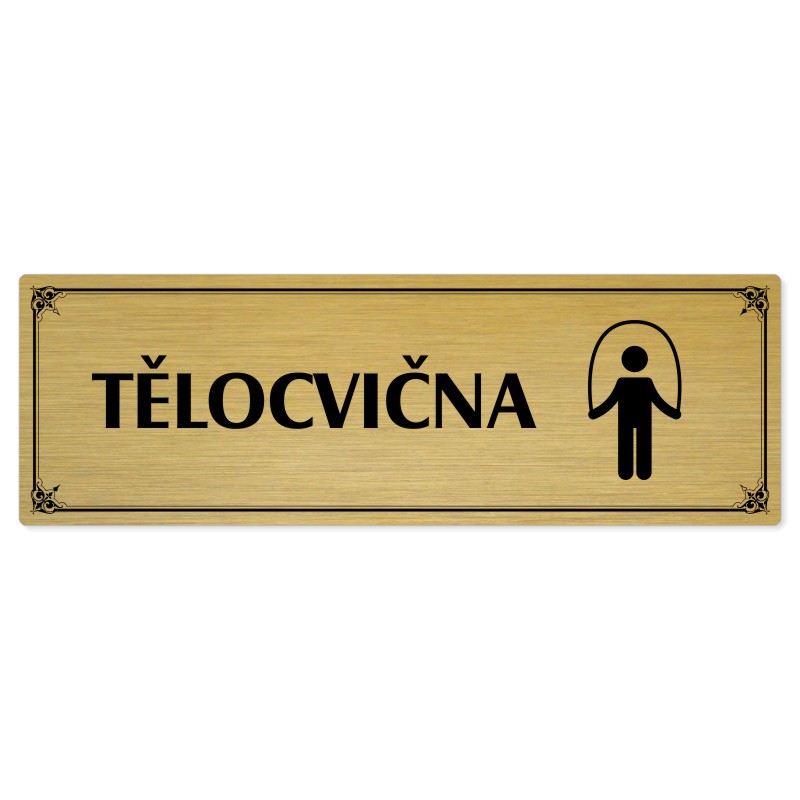 Tělocvična, 200x66mm, zlatá popiska s okrasným rámečkem