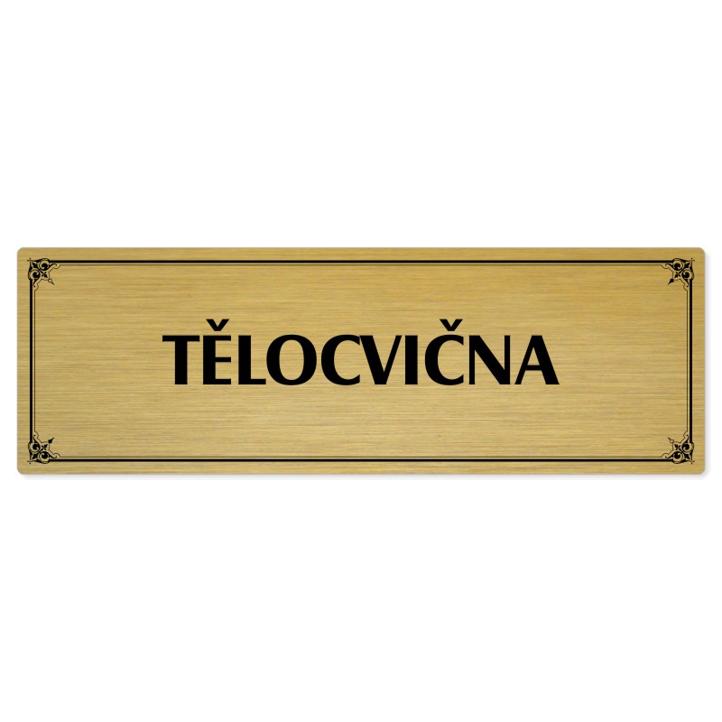 Tělocvična, 200x66mm, zlatá popiska s okrasným rámečkem