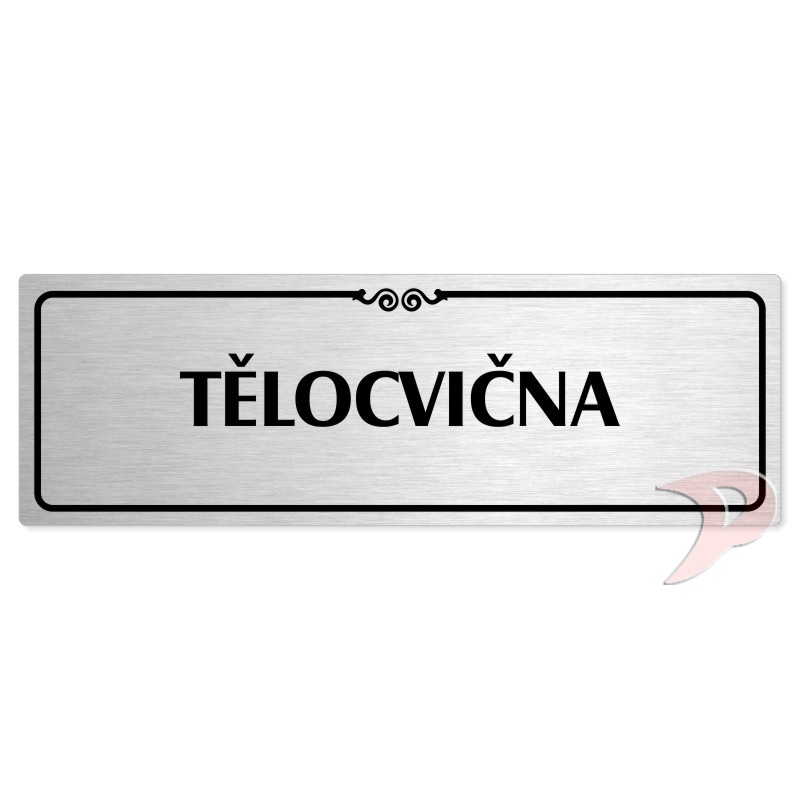 Tělocvična, 240x79mm, stříbrná popiska s ozdobou uprostřed