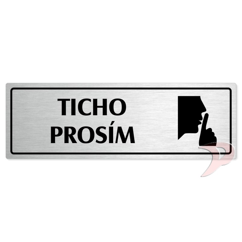 Ticho prosím, 200x66mm, stříbrná popiska s rámečkem