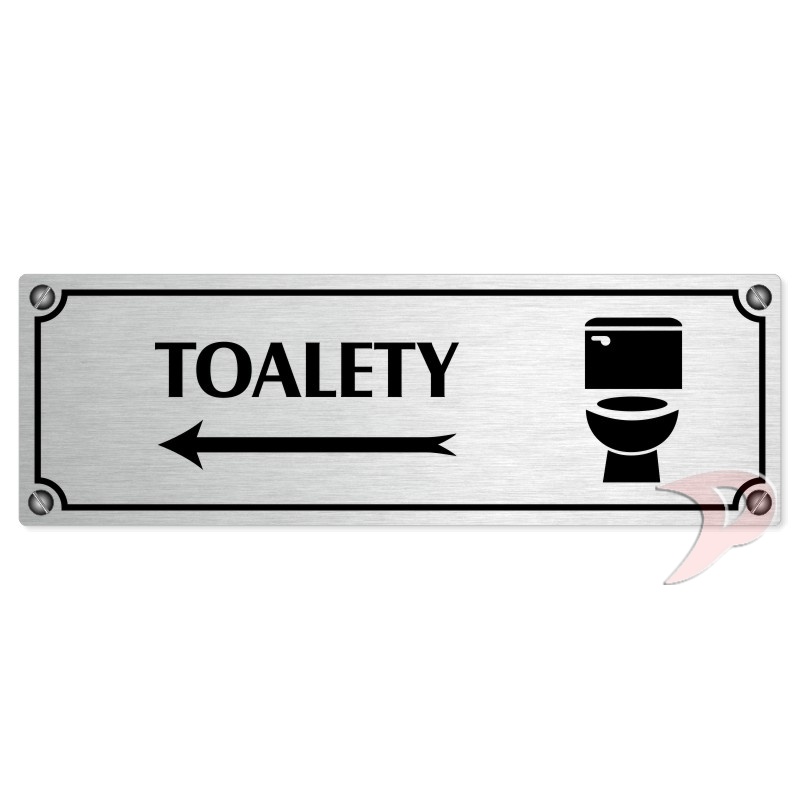 Toalety vlevo, 200x66mm, stříbrná popiska s imitacemi šroubků