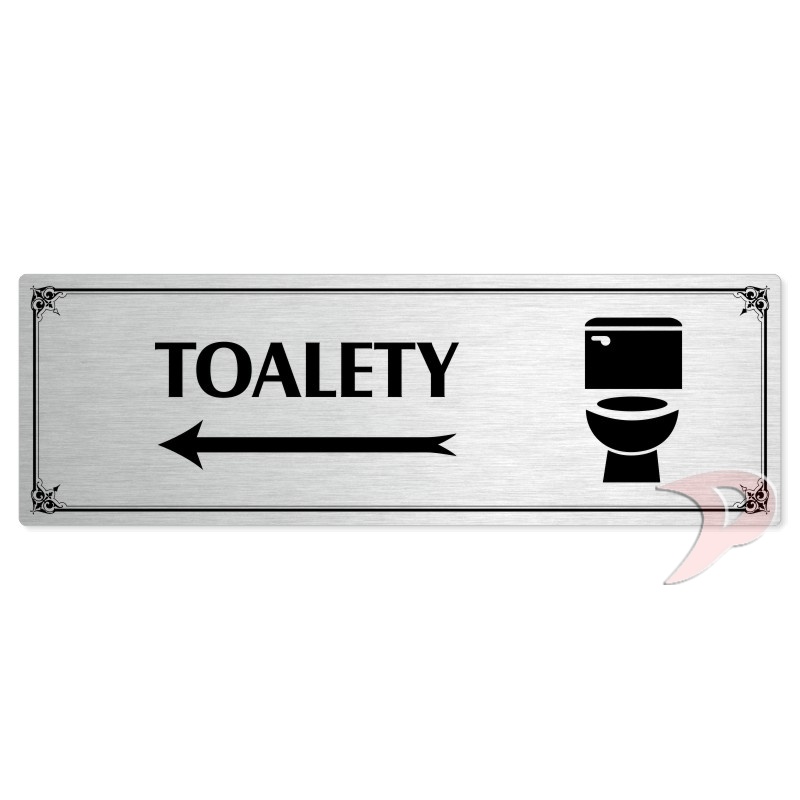 5. Toalety vlevo, 200x66mm, stříbrná popiska s okrasným rámečkem