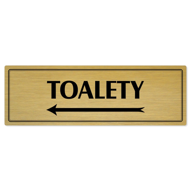 Toalety vlevo, 240x79mm, zlatá popiska s dvojtým rámečkem