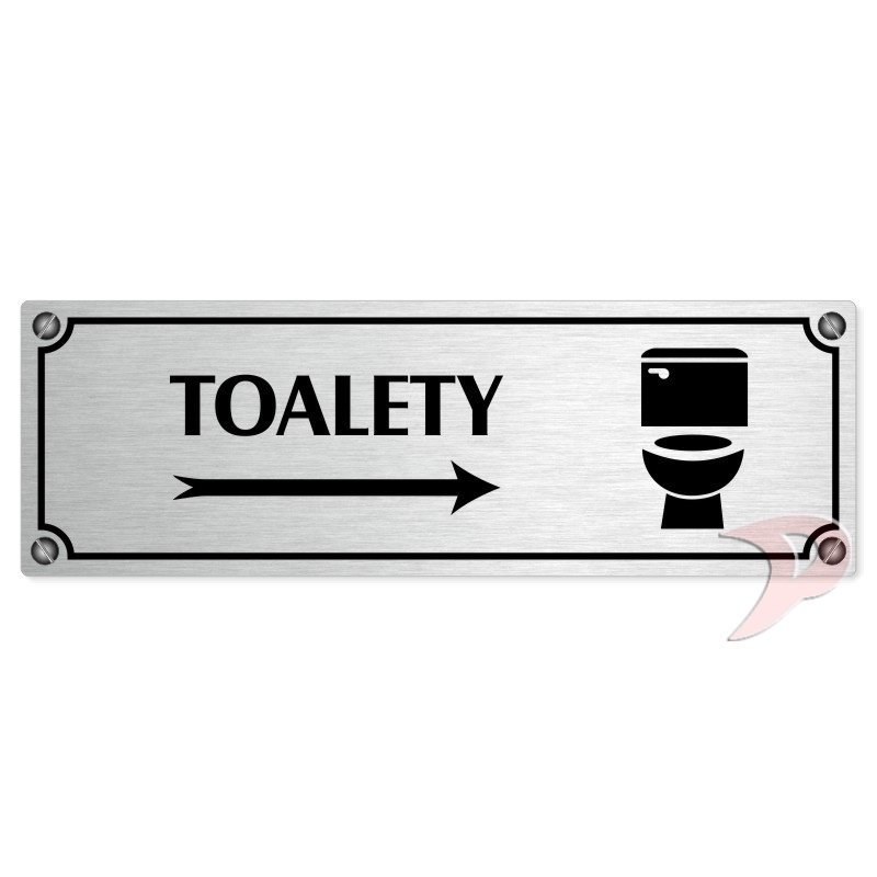Toalety vpravo, 240x79mm, stříbrná popiska s imitacemi šroubků