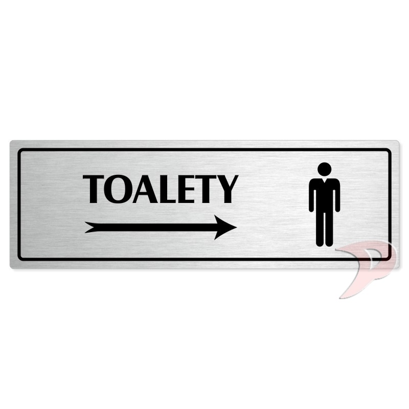 Toalety vpravo muži, 200x66mm, stříbrná popiska s rámečkem