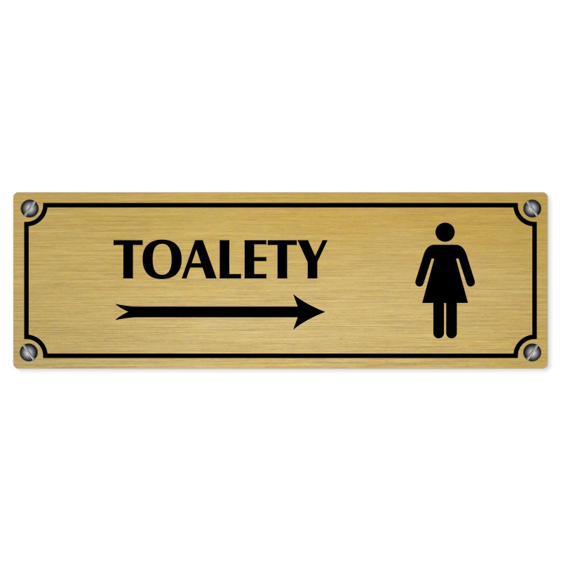 Toalety vpravo ženy, 200x66mm, zlatá popiska s imitacemi šroubků