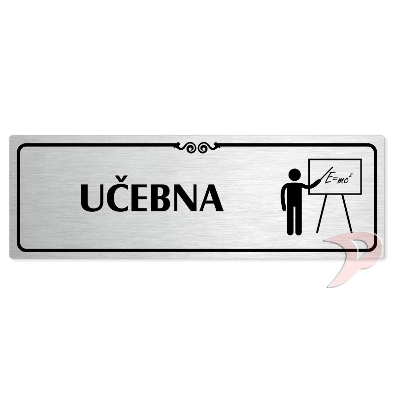 Učebna, 240x79mm, stříbrná popiska s ozdobou uprostřed