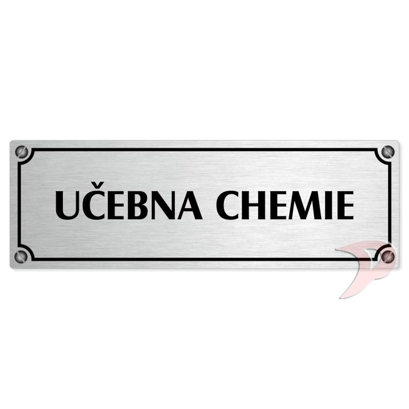 Učebna chemie, 240x79mm, stříbrná popiska s imitacemi šroubků