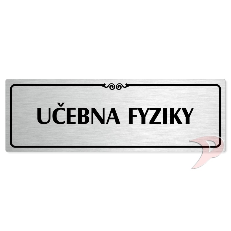 Učebna fyziky, 200x66mm, stříbrná popiska s ozdobou uprostřed