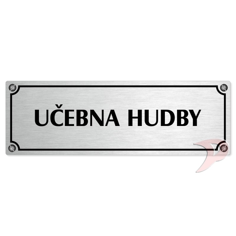 Učebna hudby, 200x66mm, stříbrná popiska s imitacemi šroubků