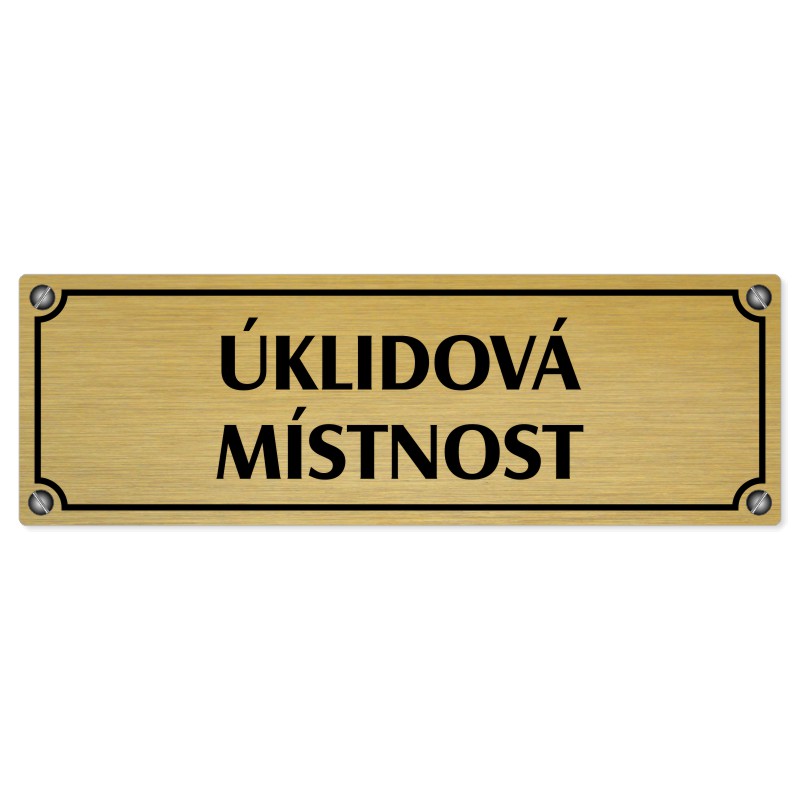 Úklidová místnost, 200x66mm, zlatá popiska s imitacemi šroubků