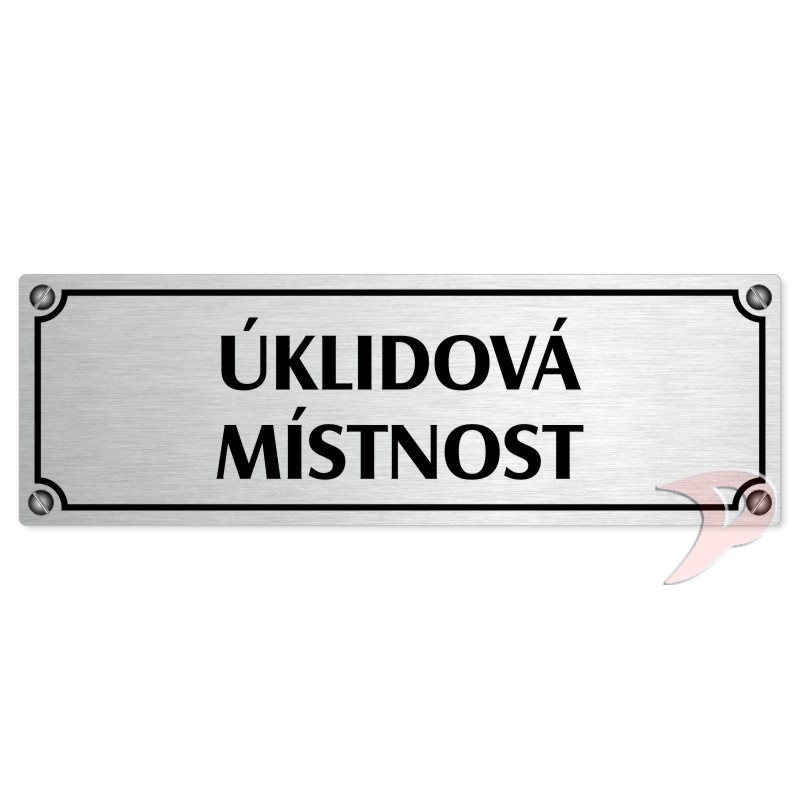 Úklidová místnost, 240x79mm, stříbrná popiska s imitacemi šroubků