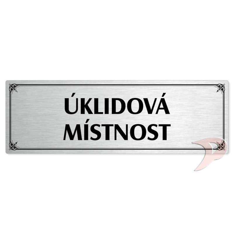 Úklidová místnost, 240x79mm, stříbrná popiska s okrasným rámečkem