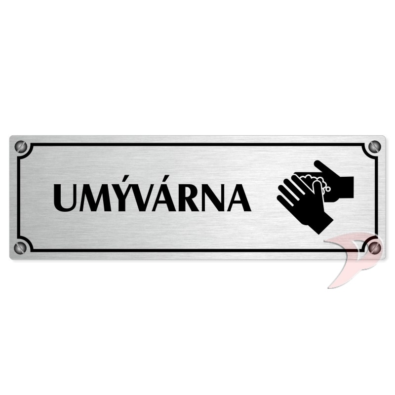 Umývárna, 240x79mm, stříbrná popiska s imitacemi šroubků