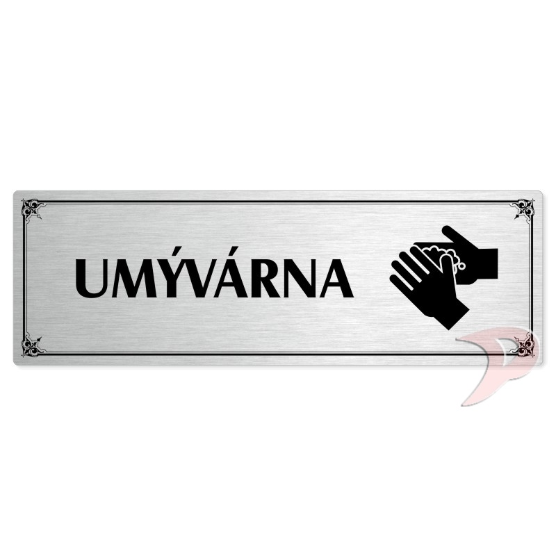 Umývárna, 240x79mm, stříbrná popiska s okrasným rámečkem