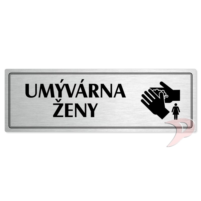 Umývárna ženy, 200x66mm, stříbrná popiska s dvojtým rámečkem