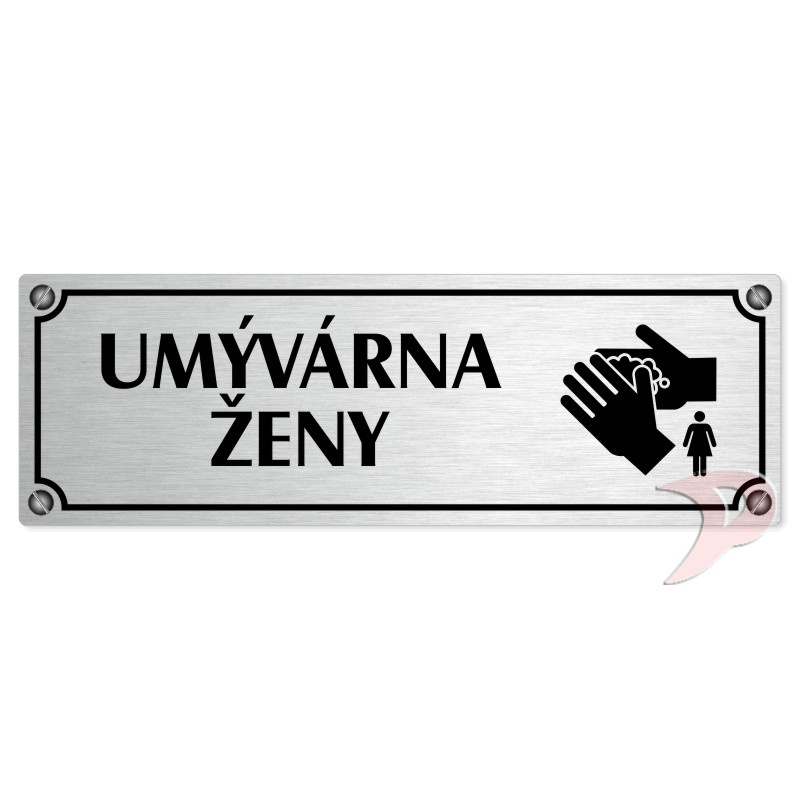 Umývárna ženy, 240x79mm, stříbrná popiska s imitacemi šroubků