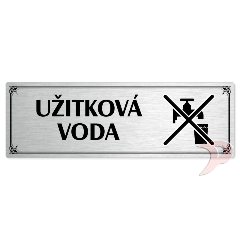 Užitková voda, 240x79mm, stříbrná popiska s okrasným rámečkem