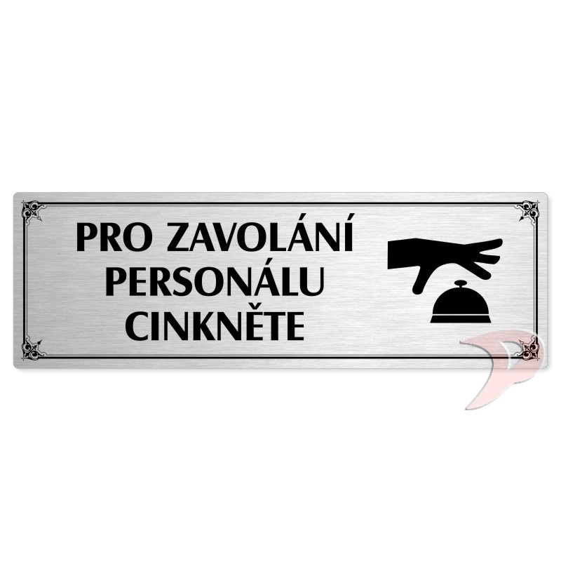 Volání personálu, 200x66mm, stříbrná popiska s okrasným rámečkem