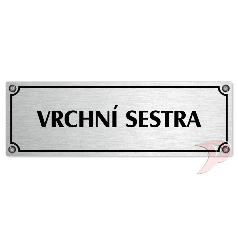 Vrchní sestra, 200x66mm, stříbrná popiska s imitacemi šroubků