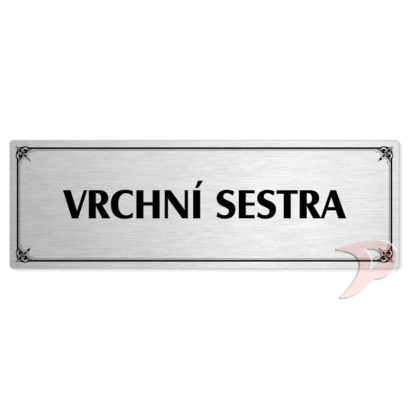 Vrchní sestra, 200x66mm, stříbrná popiska s okrasným rámečkem