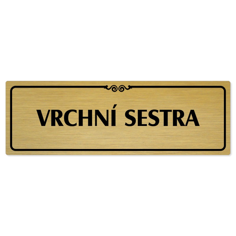 Vrchní sestra, 240x79mm, zlatá popiska s ozdobou uprostřed