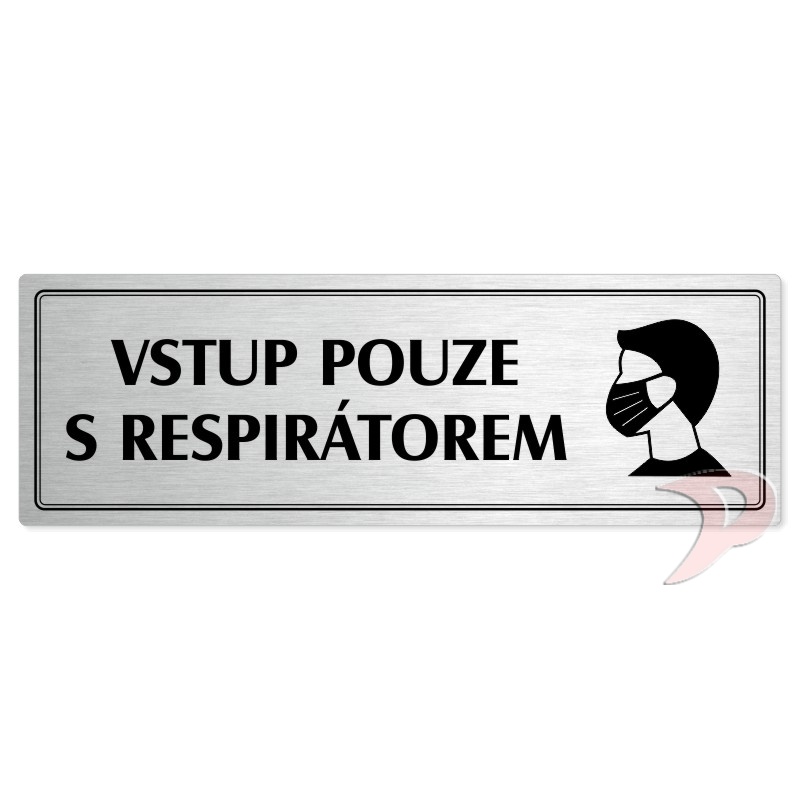 Vstup pouze s respirátorem, 200x66mm, stříbrná popiska s dvojtým rámečkem